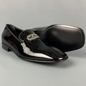 JOHN RICHMOND loafers comes in a black patent leather featuring a silver tone razor blade detail, slip on, square toe, and includes a match belt. Made in Italy.