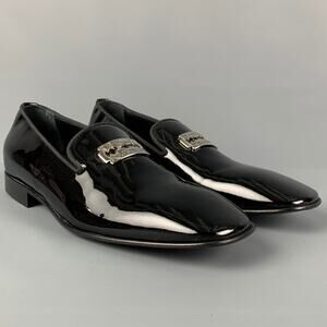 JOHN RICHMOND Size 9.5 Black Leather Slip On Razor Belt Loafers