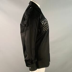 JOHN RICHMOND Size L Black Silver Cotton Blend Studded Stars Two Pockets Shirt