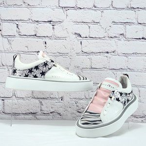 These sneakers have soft leather, zebra design, pink tongue, and the cherry on top is the shimmering silver and black stars! These are so much fun. Show off your personality in these beauties!