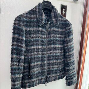 JOHN VARVATOS 'Baxter' Wool Plaid Trucker Jacket MSRP$$1298
