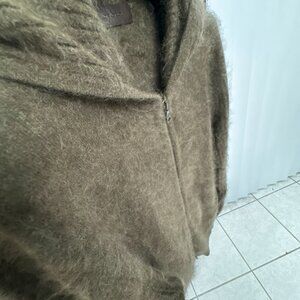 John Varvatos Fuzzy Wool zip hoodie. I think it's called the 'Katherine' Hoodie? I have the tags somewhere, I think. It's Cashmere, so super soft.