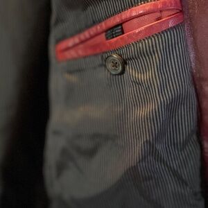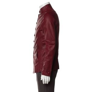 John Varvatos burgundy/maroon band collar button front goat leather moto jacket Men's Size 54.