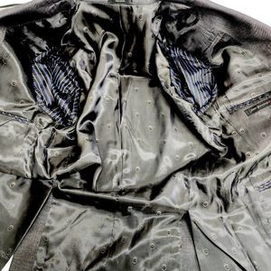 Remarks: This suit jacket is in excellent condition - we could not find a flaw! This jacket has a soft, silky interior lining including the sleeves, and the external wool fabric is very refined, tightly woven and soft. The functioning hip pockets can be converted from the traditional flap design to a jetted welt pocket design by tucking in the overlaying 'flap'. All 3 interior pockets are welt design. We expect it to go fast at this price so don't wait! You can get a Varvatos for under $50.00 that is in a condition similar to new!