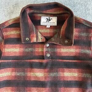 JOHN WAYNE SUPPLY MENS RED BLACK PLAID SNAP PULLOVER FLEECE S
