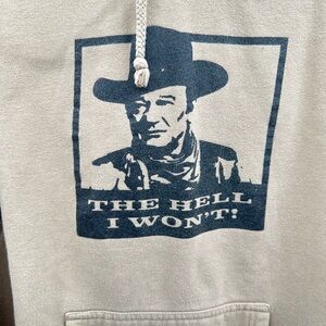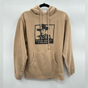 JOHN WAYNE “The hell I won’t” tan western casual cowboy cozy hood sweatshirt S
