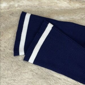 Ruffled-Cold Shoulder Sweater in Sailor, Navy Blue & White