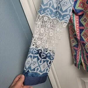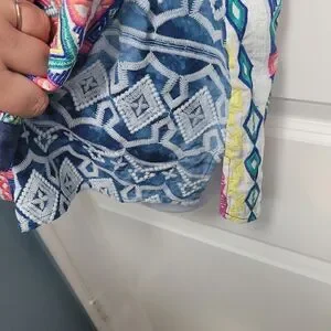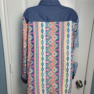 Super cute and unique button down top from John and Mark. Multi color and pattern. In great condition. Size large