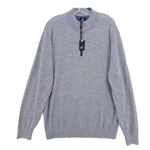 JOHNNIE-O Baron Merino Wool Blend 1/4 Zip Sweater Light Gray Heather Pullover XL