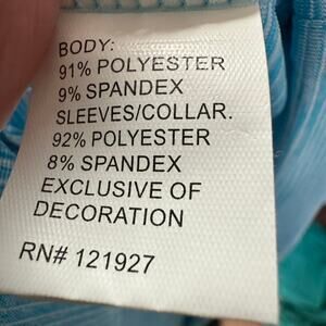• Material: Body – 91% polyester, 9% spandex; Sleeves/Collar – 92% polyester, 8% spandex