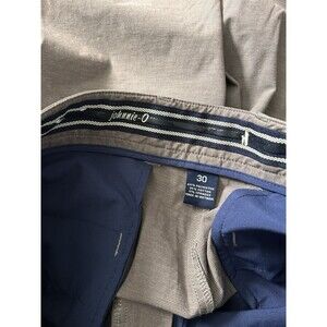 Look stylish and feel comfortable on the golf course with these gray purple hue microstripe golf shorts by johnnie-O. The flat front design and 9-inch inseam provide a classic look that's both trendy and practical. Made with a blend of polyester, cotton, and spandex, these shorts offer a perfect balance of stretch and breathability, ensuring you stay comfortable all day long. The zip closure provides a secure fit while the striped pattern adds a touch of style. These shorts are perfect for any golfer looking to elevates his game both on and off the course. Good condition