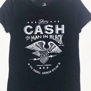 JOHNNY CASH The Man In Black Graphic T-Shirt Short Sleeve Crew Neck Black Size S