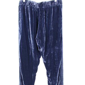 JOHNNY WAS AURORA SUPER SOFT VELVET JOGGER DENIM BLUE BOHEMIAN BAGGY ELASTIC LEG AND WAIST; PULLS ON; SIDE EMBROIDERY
