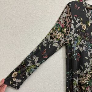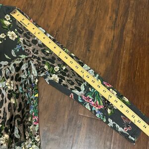 JOHNNY WAS Ash Bird Leopard Favorite Long Sleeve V-Neck Swing Tee Womens Sz 1X W10K93