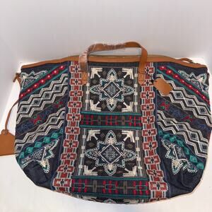 JOHNNY WAS Austin Embroidered Cloth Cotton Large Overnight Tote Weekender Bag