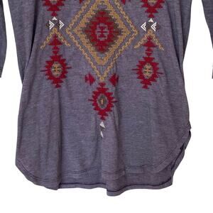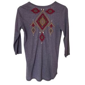 JOHNNY WAS Aztec Embroidered 3/4 Sleeves Tunic Top Shirt
