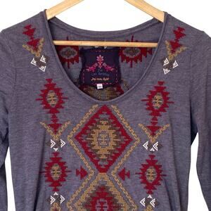 JOHNNY WAS Aztec Embroidered 3/4 Sleeves Tunic Top Purple, Size Small