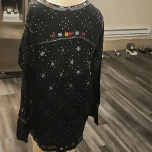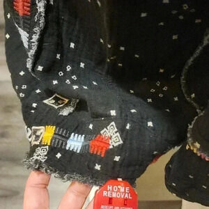 JOHNNY WAS EMBROIDERED LONG SLEEVE BLOUSE BOHO CHICK NAVY BLUE SIZE S