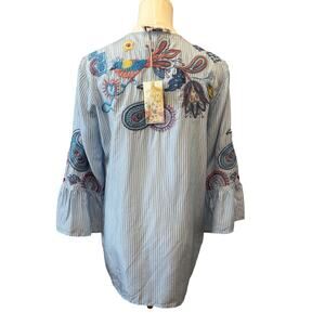 JOHNNY WAS Barine Stripe 100% Silk Nielly Ruffle Sleeve Blouse Size XS Oversize