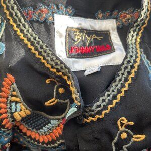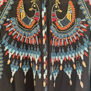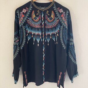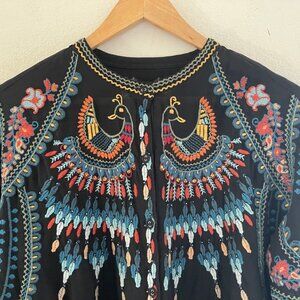 JOHNNY WAS Biya Black Peacock Embroidered & Beaded 100% Silk Blouse is NWOT! Size Small
