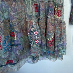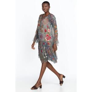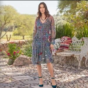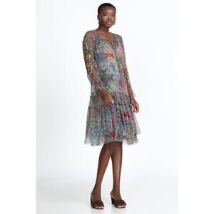 JOHNNY WAS Biya Wilde Mesh Dress Embroidered Boho Size XS Petite Floral Fall