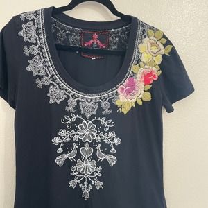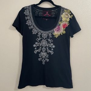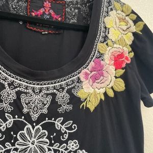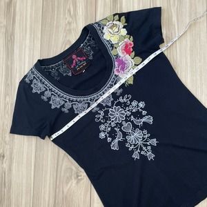 JOHNNY WAS Dark Navy Embroidered Top Size L