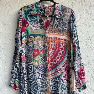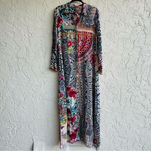 JOHNNY WAS Dress Women Small Maxi Button Down Boho Oversized Coverup Resort Wear