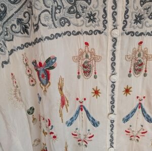 JOHNNY WAS Embroderied Boho Flowy Insect Print Gauzy Top Size XS
