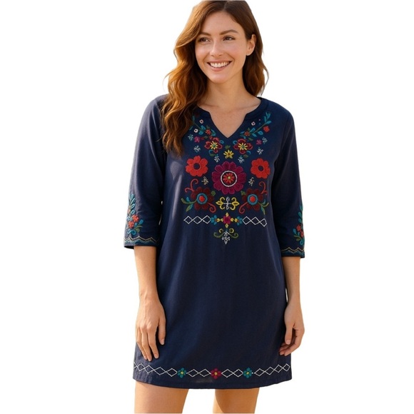 JOHNNY WAS Embroidered Boho Tunic Dress