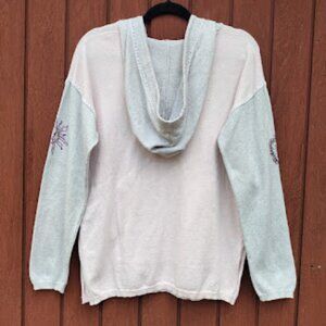 JOHNNY WAS | Embroidered Pastel Pink Grey V-Neck Oversized Sweatshirt Hoodie S