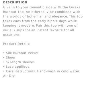 JOHNNY WAS Eureka Burnout Lace Top in Black S