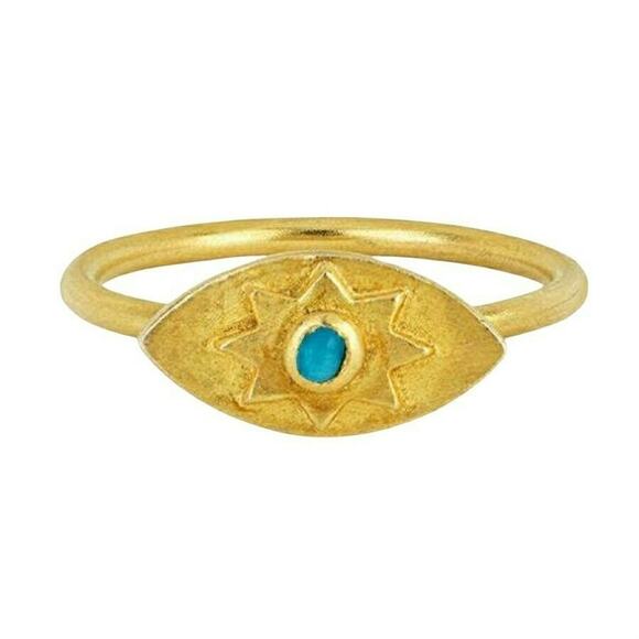 JOHNNY WAS Evil Eye turquoise bohemian boho gold plated brass ring Size 7 NEW