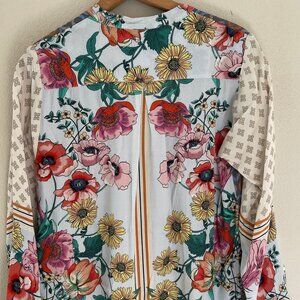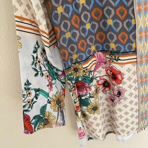 JOHNNY WAS Floral Print & Geometric Embroidered Tunic/Top: NWOT! XS (Runs Large)