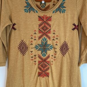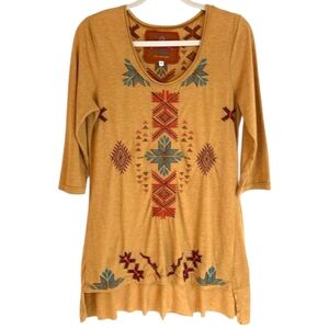 JOHNNY WAS Gillian Tunic Mustard Boho Southwestern Embroidered Top Women Medium