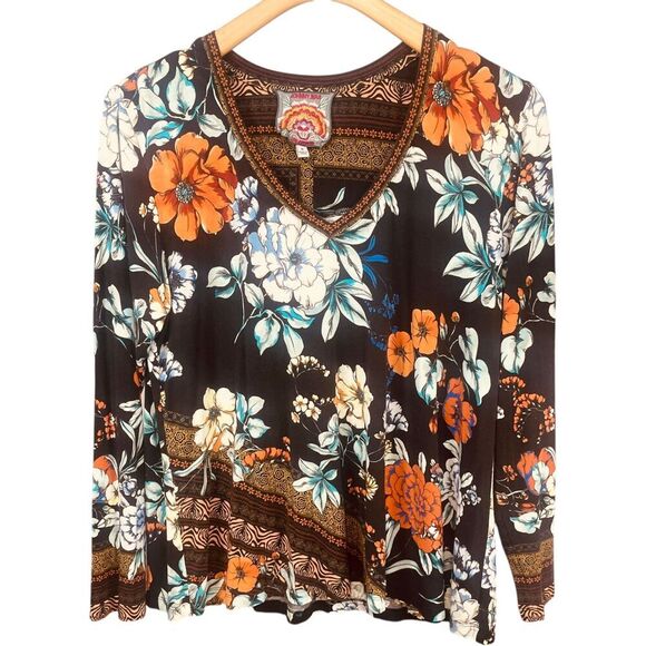Tags: fall, winter, spring, summer, all seasons, Johnny Was, golden, spring favorite, long sleeve, v-neck, swing, tee, bamboo, top, floral, women’s, blouse, knit, office, work, career, corporate, dinner, date, evening, night out, casual, everyday wear, weekend wear, travel, festival, party, colorful, feminine, girly.