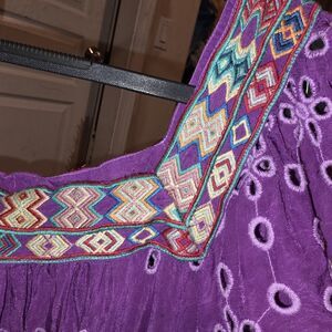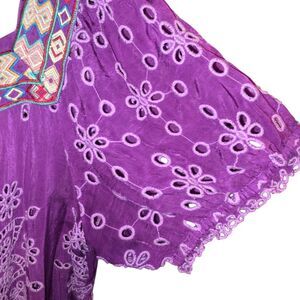 JOHNNY WAS HAPPY SIA Sz XL Purple Embroidered Square Neck Eyelet S/S Blouse Boho
