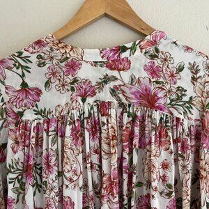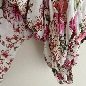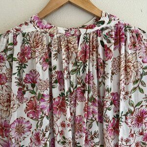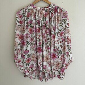 JOHNNY WAS "Isla" Jade Pink & Cream Floral Print Blouse XS (Runs VERY LARGE: P2P is 32"): NWOT!
