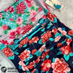 JOHNNY WAS JAPER RUCHED ONE PIECE SWIMSUIT IN FLORAL BLUE RED SMALL, LARGE NEW