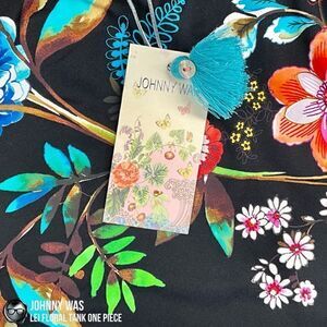 JOHNNY WAS LEI FLORAL TANK ONE PIECE PLUS SIZE 2X SWIMSUIT IN BLACK FLORAL NEW