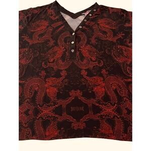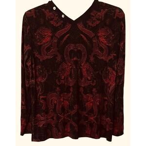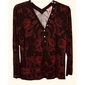 JOHNNY WAS LONG SLV, V-NECK, PULL-OVER BLOUSE, WOMENS, XL, BLACK & REDISH-ORANGE