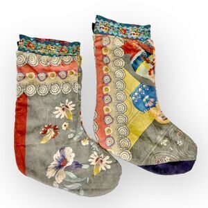 Celebrate the holidays in style with bohemian style. This stocking is a delightful accessory that mixes floral and geometric motifs for a modern result that will take your holiday décor to the next level. Have fun mixing and matching different prints to create a fun stocking display above your fireplace! Each features Johnny Was embroidered hang tab.