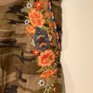 JOHNNY WAS Los Angeles XXL linen embroidered camouflage shorts