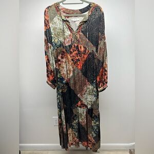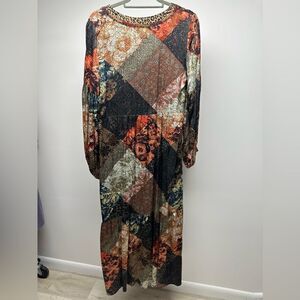 The pefect long sleeve dress for those cooler months. With its long flowy fit and on-trend print mixing, our Mabel Boho Dress combines effortless elegance with breezy style. Trendy silhouette and retro-style sleeves. 100% Silk. V-Neck. Tassels. Measurements for size medium: Length- 54 1/2", Bust- 41".Dry clean only.