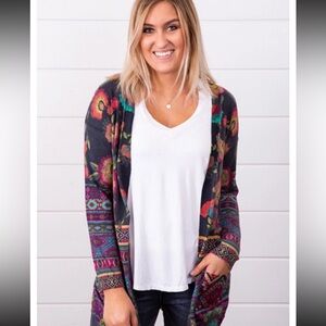 JOHNNY WAS Mila Cotton Cashmere Open Front Boho Cardigan Sweater Sz S