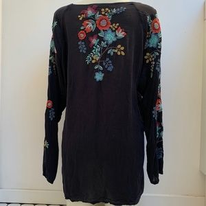 JOHNNY WAS Oversized BLOUSE Embroidered Pullover Top Tunic M BOHO Floral Black