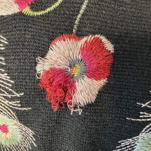 Great pre owned condition. Please note, there are a few areas of pilling, and some loose threads on one of the embroidered flowers. I do think the pilling could be decreased with a sweater shaver!