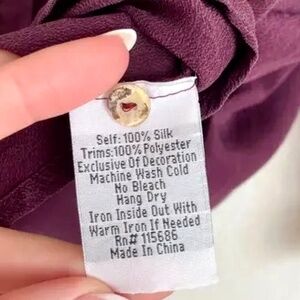 JOHNNY WAS Purple Floral Embroidered Long Sleeve Silk Top Small