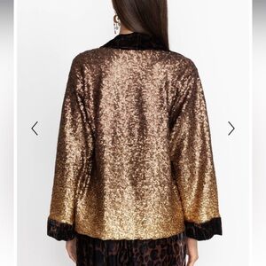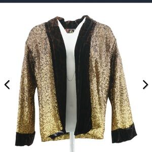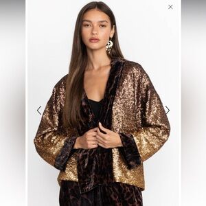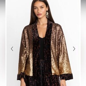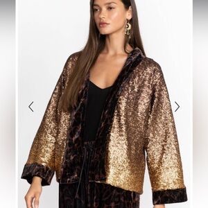JOHNNY WAS SEQUIN GOLD PLAZA KIMONO $398 BOHO DESIGNER ANIMAL PRINT fall jacket