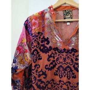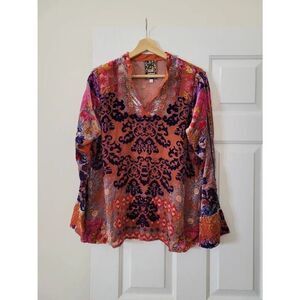 JOHNNY WAS SYRIAH BURNOUT ENTA BLOUSE M $295