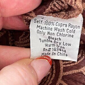 Color is Called Wild Cherry Potting Soil; Relaxed Fit with Tie Front Closure; 100% Cupra Rayon; Machine Washable.